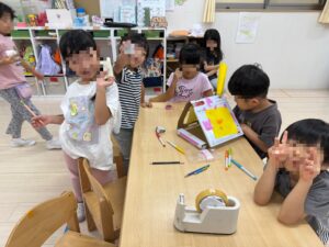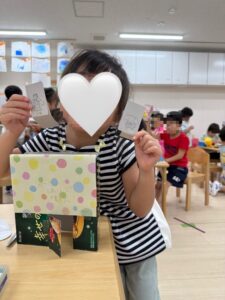 作った作品を友だちや先生に見せて嬉しそうな子どもたちです!