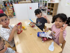 5歳児さんが作っていると、4歳児さんも興味を持つようになり一緒に廃材遊びを楽しむようになりました♪