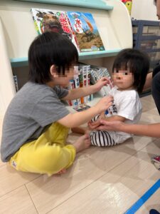 お兄さんとふれあい遊びを楽しむ姿が♡