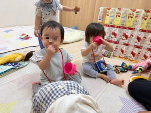 友だちが食べる真似をするとそれを見た子が真似をして楽しんでいます😊
