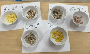 「きのこは苦手だからちょっとだけ」「コーン大好き!たくさん入れたい!」
