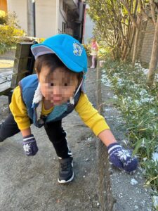 端にあった雪をかけ集めて夢中になって遊んでいました。