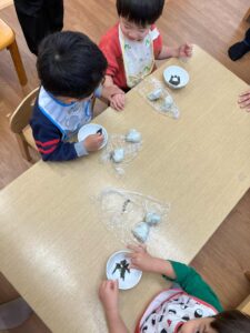 ちぎり終わると「先生見て!出来たよ。次は何するの?」と