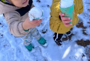 雪でアイスを作って見立て遊びや、雪玉の中に「何が入っているかな?」と