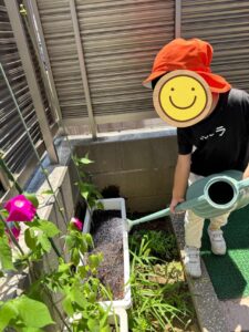 毎日水やり当番を頑張り、お花が咲き始めました。