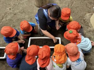 6月に朝顔の種を、きりん組さん(4歳児)が蒔きました。