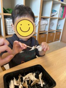 先日1歳児と2歳児で「きのこ」を使った食育がありました。