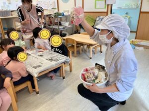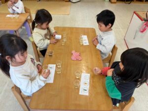 幼児クラスは11月24日の和食の日にちなみ、「お出汁」についての食育がありました。