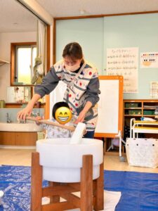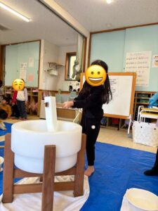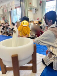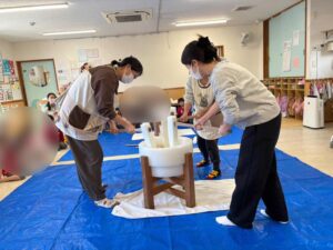 今日は保育園でお餅つきがありました。