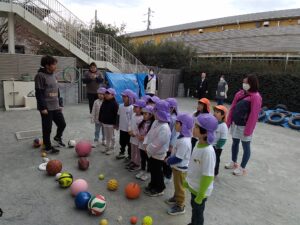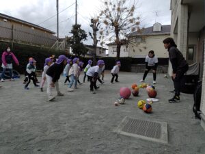 昨年度の1月に、”マイファーストボール”の方が園に来てくれてスポーツ教室を行いました。
